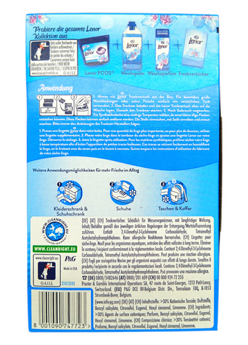 Chusteczki zapachowe Lenor z importu to idealny to niezwykły produkt, który sprawi, że Twoje ubrania będą pięknie pachnieć po wyciągnięciu z pralki. Wystarczy tylko jedna chusteczka włożona do bębna pralki, by cieszyć się przez długi czas zniewalającym aromatem na odzieży. Sprawdź już dzisiaj chusteczki zapachowe Lenor z importu.