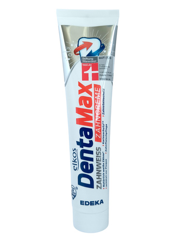 Elkos Denta Max Sensitive jest odpowiednia dla wrażliwych szyjek zębów, które są całkowicie odsłonięte, a także zębów, które często reagują boleśnie na zimno, gorąco. Skutecznie chroni przed próchnicą i powstawaniem kamienia nazębnego.