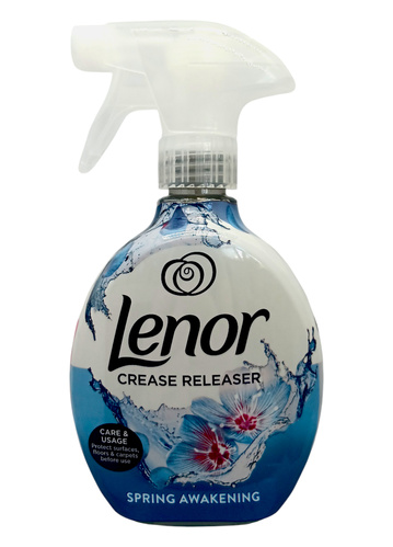 Lenor środek do usuwania zagnieceń. Usuwa zagniecenia bez kłopotów z prasowaniem. Wystarczy spryskać i wygładzić zagniecenia. Pozostawia przyjemny zapach. Idealny do praktycznie wszystkich rodzajów tkanin, świeżo wypranych i wysuszonych.
