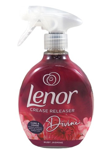 Lenor środek do usuwania zagnieceń. Usuwa zagniecenia bez kłopotów z prasowaniem. Wystarczy spryskać i wygładzić zagniecenia. Pozostawia przyjemny zapach. Idealny do praktycznie wszystkich rodzajów tkanin, świeżo wypranych i wysuszonych.