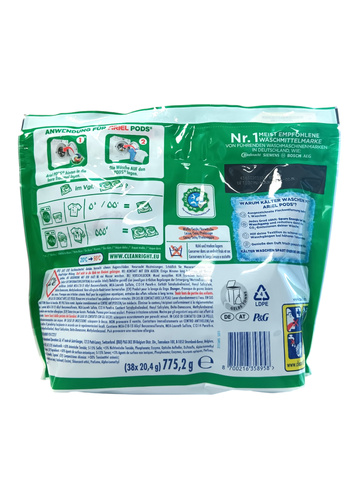 ARIEL kapsułki zapewniają pranym tkaninom świeżość i intensywność kolorów. Działają nawet na 7-dniowe, zaschnięte plamy. Skuteczne w niskich temperaturach. Nie należy stosować do prania wełny, jedwabiu. Zakres temp.20-95 st. C.