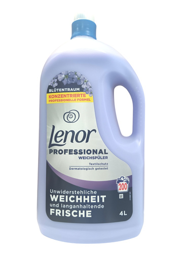 LENOR skoncentrowany płyn do płukania tkanin do użytku profesjonalnego. Chroni ubrania przed nieprzyjemnym zapachem. Zapewnia miękkość i długotrwałą świeżość. Hipoalergiczny: z obniżoną zawartością alergenów zapachowych.