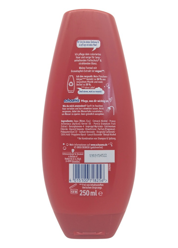 Schauma odżywka przeznaczona do pielęgnacji włosów farbowanych z granatem. Zapewnia długotrwałą ochronę koloru i promienny połysk. Odpowiednia dla wegan. Nie zawiera silikonów.