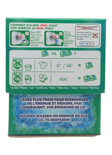 Ariel kapsułki do prania kolorowych tkanin. Zapewniają doskonałe czyszczenie w zimnych i krótkich cyklach prania. Nie należy stosować do prania wełny i jedwabiu. Zakres temp. 20-95 st. C.
