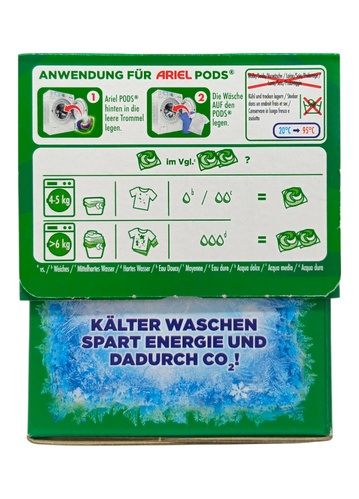 ARIEL kapsułki do prania kolorowych tkanin. Skutecznie usuwają plamy nawet w zimnej wodzie. Chronią kolory i pielęgnują włókna zachowując ich kształt. Nie należy stosować do prania wełny i jedwabiu. Zakres temp. 20-95 st. C.