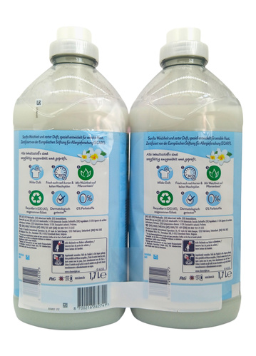 LENOR zestaw 2 hipoalergicznych płynów do płukania tkanin dla osób o wrażliwej skórze o delikatnym zapachu. Zapewnia uczucie świeżości nawet po krótkich i zimnych cyklach prania. Nie zawiera barwników. Ułatwia prasowanie.