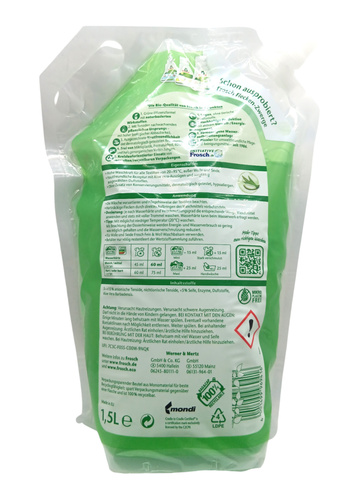 • Frosch Sensitive Aloe vera żel do prania dla osób o wrażliwej skórze. Przeznaczony jest do prania tkanin białych i kolorowych. Zakres temperatury 30-60 st.C .