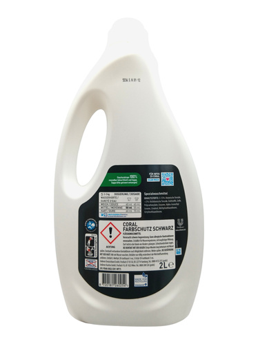 • Coral płyn do prania wszystkich ciemnych i czarnych tekstyliów. Pielęgnuje strukturę tkaniny, chroni kolory. Nie stosować do wełny i jedwabiu. Zakres temp.20-60 st. C.
