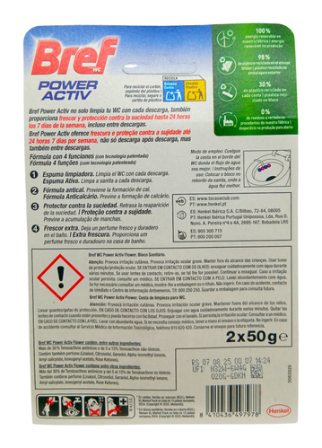 • Bref Power Activ Flower zawieszki do toalety 2x50g. Czyści toaletę przy każdym spłukaniu. Zapobiega osadzaniu się kamienia. Pozostawia świeży zapach w łazience oraz zapewnia ochronę przed brudem 24/7 nawet pomiędzy spłukiwaniami.