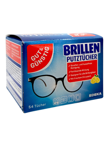 Chusteczki do okularów Gut&Gunstig z importu to niezwykle skuteczny produkt, który pozwoli Ci się raz na zawsze pozbyć wszelkiego rodzaju zabrudzeń oraz smug z okularów. Wystarczy tylko jedna chusteczka, by Twoje szkła znowu były czyste i zachwycały blaskiem. Pamiętaj, że przejrzystość szkieł jest ważna ze względu na korektę wady wzroku. Dlatego warto dbać o okulary!